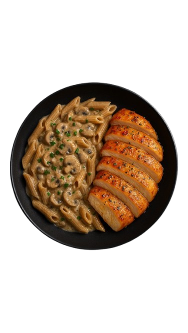Poitrine de poulet basse température infusé au thym penne intégrale et sauce forestière allégée